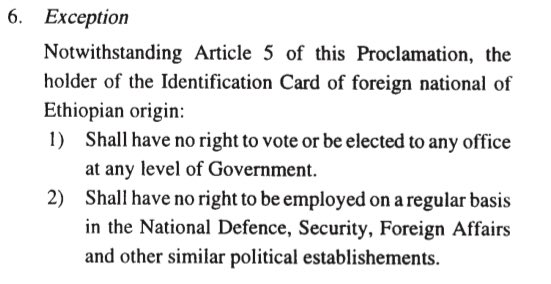 Re: Proclamation 270/2002 - Rights of Foreign Nationals of Ethiopian Origin