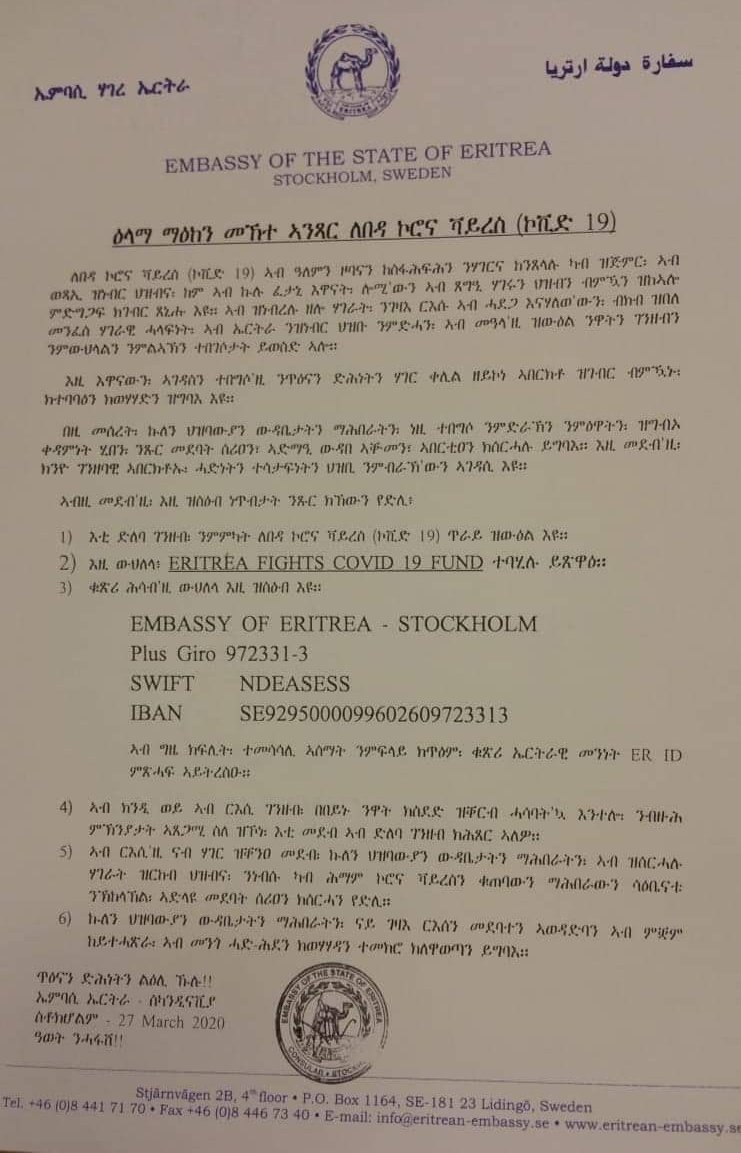 AN OPEN LETTER TO THE GOVERNMENT OF Eritrea ON THE SPREAD OF COVID-19
