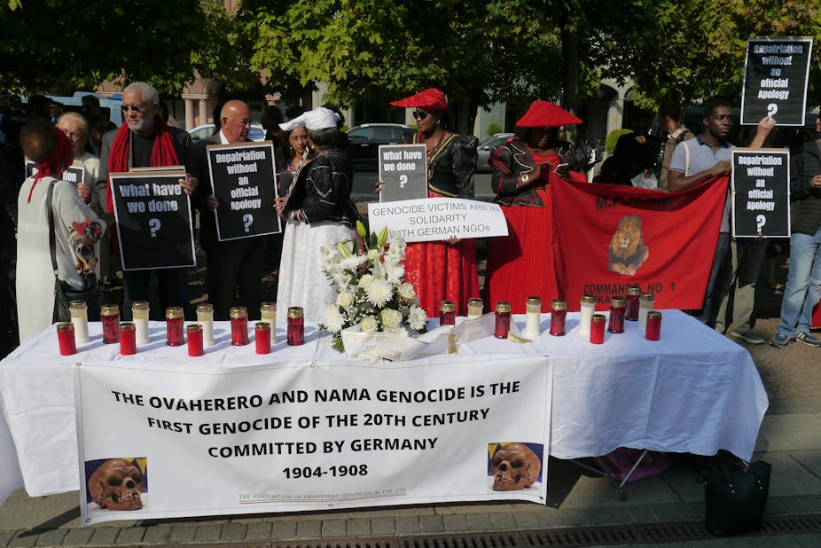 Protesters in Berlin demand that the 1904-1908 mass killings in Namibia be recognised as the first genocide committed by Germany. Supplied/Courtesy of Joachim Zeller