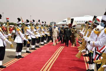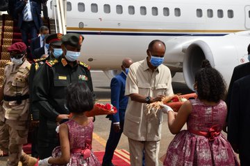 The two leaders agreed to bolster joint efforts to advance the ambitious plans of the two countries for bilateral relationship as well as regional integration. President Isaias Afwerki & his delegation were received at the airport in Khartoum by President Alburhan.