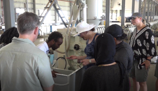Materials to create the pipes, begin as small as pebbles. Then, they become pipes. It was fascinating to see this, on our tour of the plastics factory in Massawa.