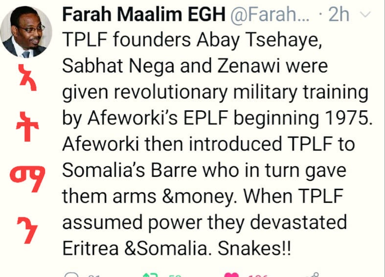 Re: TWEET OF THE DAY: "This is Isayas Afeworki's war. Abiy is just a flower girl" [Brian Higgs]. See other tweets too.