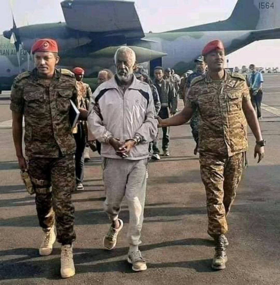 Furthermore, Why was the Ogaden renegade leader Abdi iiiiiiley was treated more humanly and he was not even hand cuffed by the soldiers, yet Sebhat Neggah who is almost 90 years old who can barely stand up with his own means, was hand cuffed, paraded like a Chinese Panda and people were allowed to take selfies with him? Even when he faced Trial in the courthouse in Addis abeba, he was not offered the outfit which makes him look respectable and representable but he looked like a street boy. let alone a former leader, Even simple thieves and serial murderers are offered to wear suit when they go to court and face the jury.