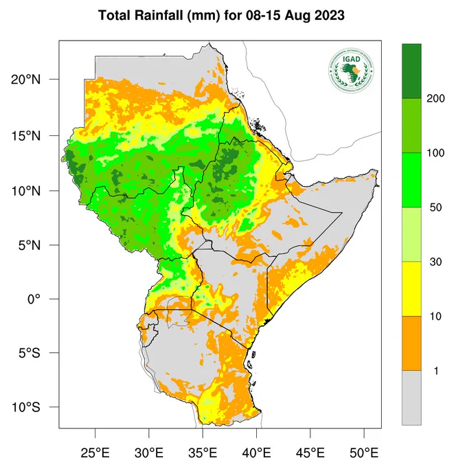 Eritrea - Rainfall forecasts (even short-term), must always be taken with a pinch of salt. The caveat notwithstanding, IGAD rainfall forecasts for Eritrea look good in terms of precipitation levels & spatial distribution..⛅ Weekly forecast 08 - 15 August: