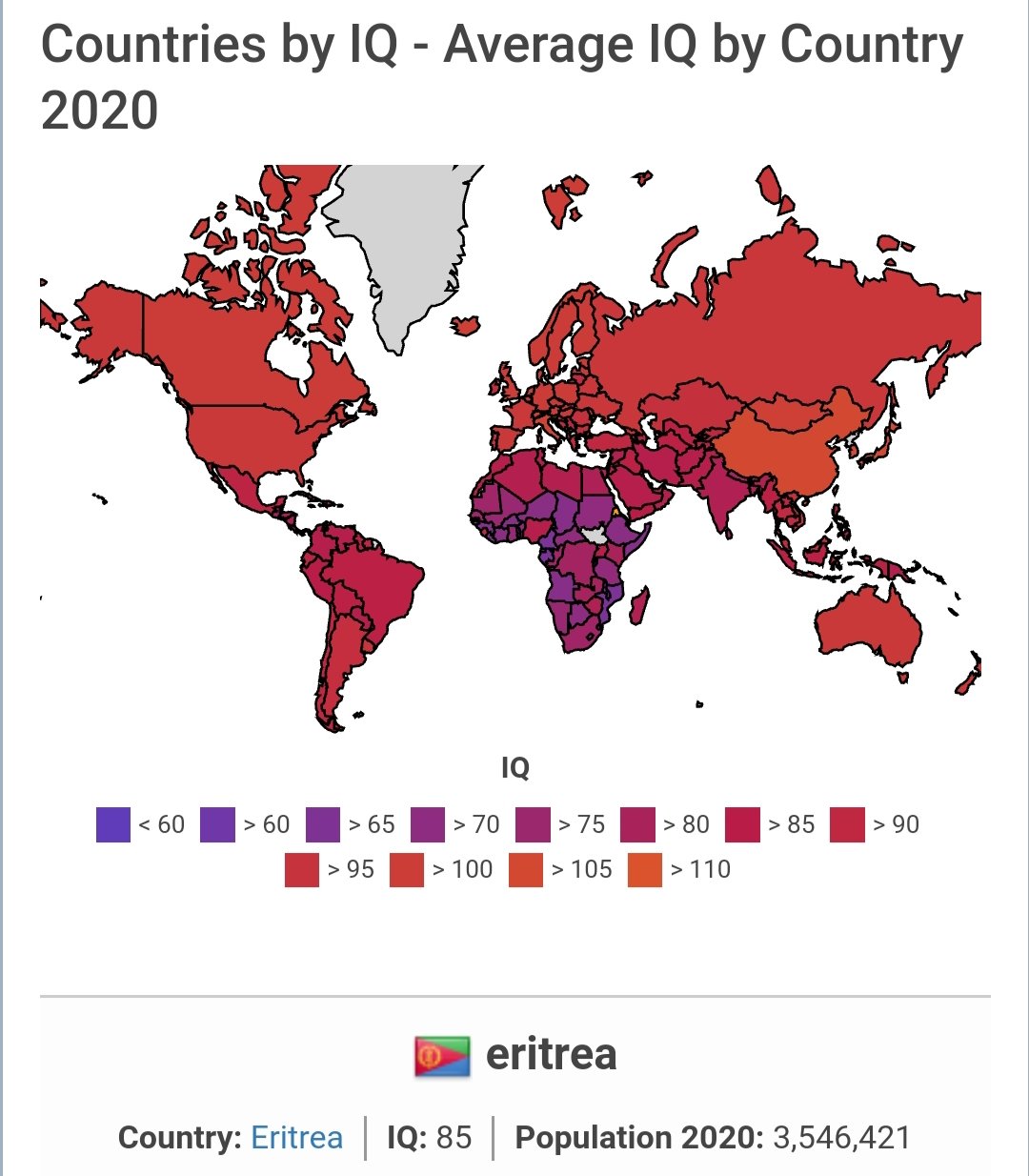I know my fellow eritreans bros and sis will ignore you but Let me lower to you guys level just once and produce you real data on the world IQ index.