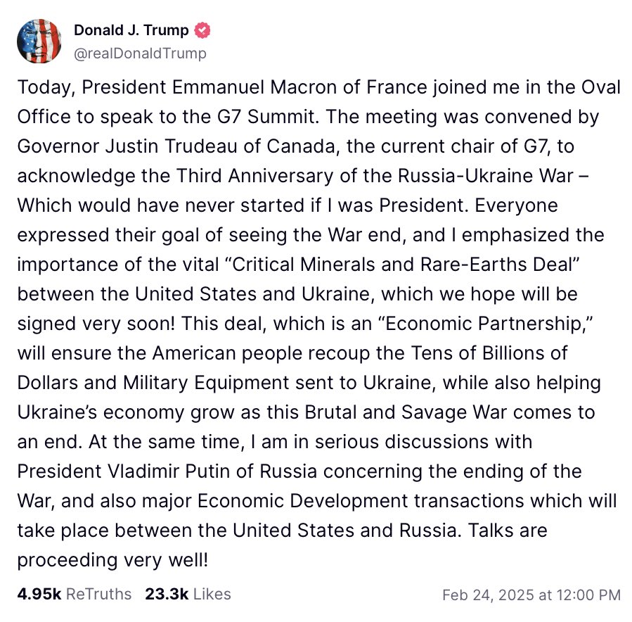 Putin emphasized Russia's significant rare earth resources, noting that they exceed those of Ukraine. He added that a separate U.S.-Ukraine rare earth deal would not impact Russia's economic strategy.
