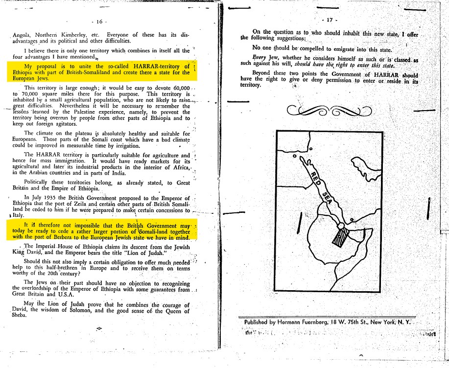 In 1944, there was a proposal to unite the so-called HARRAR teritory of Ethiopia with the then part of British -Somaliland and create there a state for European Jews. Haileslassie, didn't agree to the plan.
