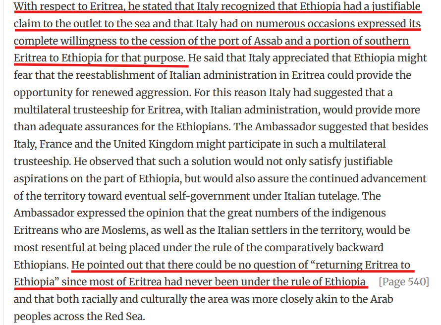 The evidence documenting Eritrea’s historic statehood and Ethiopia’s expansionist land-grab ambitions is overwhelming. One striking example comes from declassified U.S. State Department minutes of a March 1949 meeting between Italian Ambassador Tarchiani and Secretary of State Dean Rusk, where it was noted:
