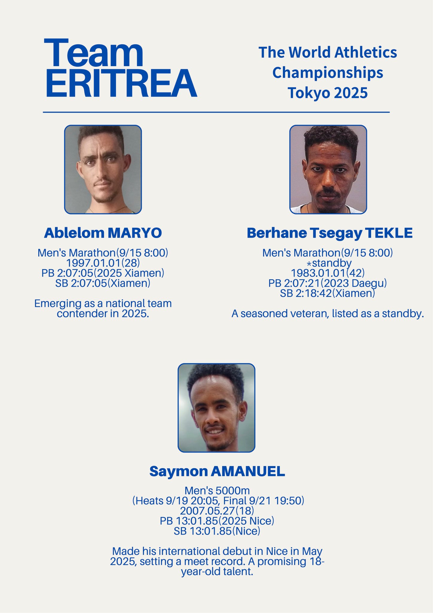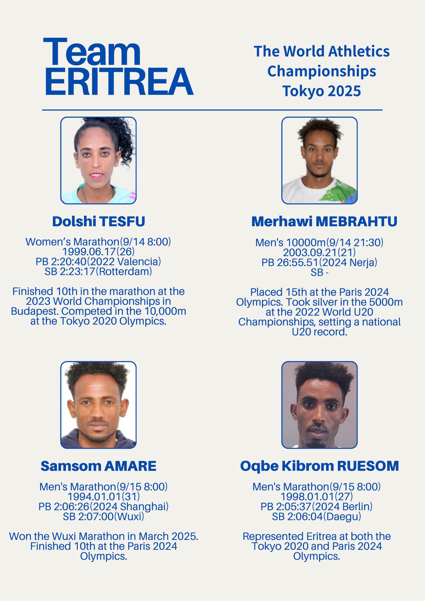 The countdown is on! Tokyo hosts the World Athletics Championships 2025, from September 13. Team 🇪🇷 ERITREA, is ready to race on the world stage. Your support will power their race!
