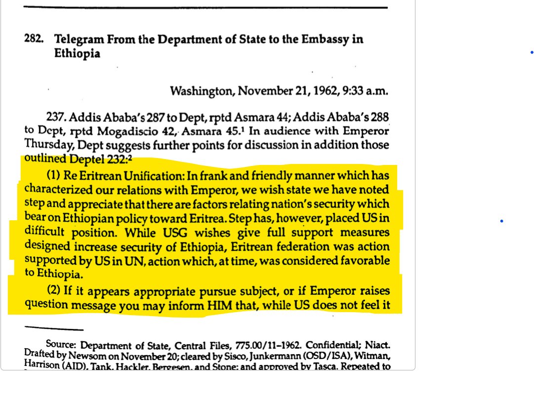 Re: U.S. Telegrams Reveal Panic and Shame Over Eritrea’s Annexation