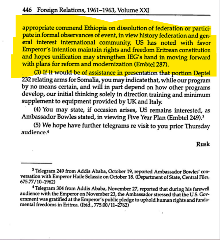 Washington urged that Eritrea’s constitutional rights and institutions continue, hoping this might also encourage Haile Selassie to implement much-needed reforms and modernization within Ethiopia.