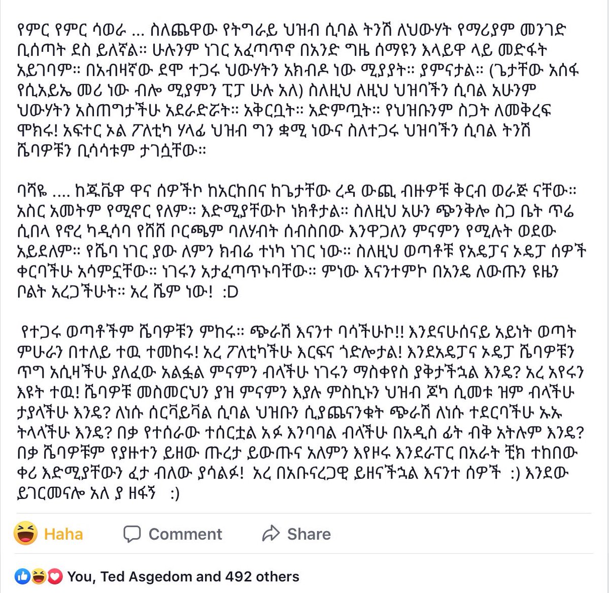 ህወሃት የጎደላት እርፍና ነው!