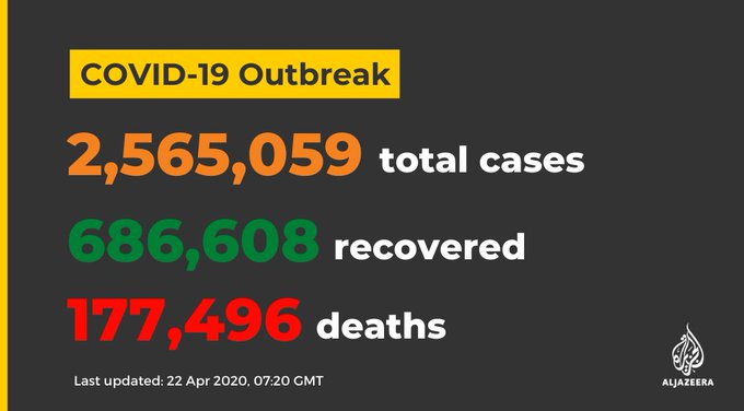 • Cases rise to more than 2.5 million worldwide