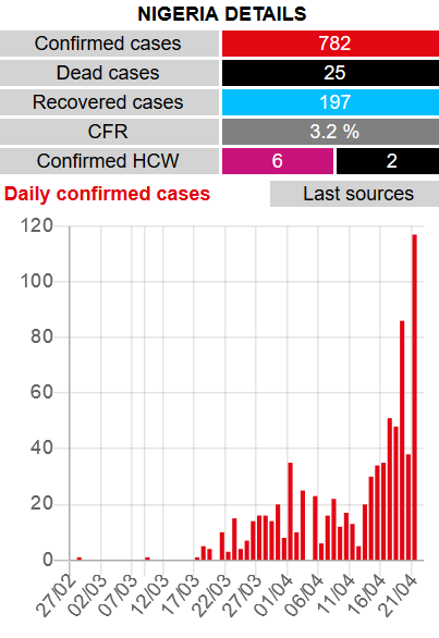 As at April 18, Somalia and Gabon had crossed into the three-digit space