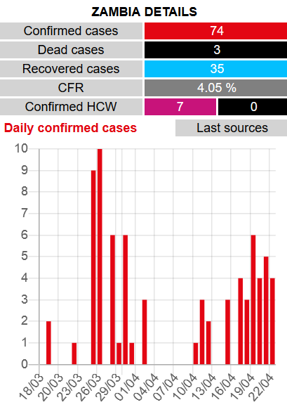 Zimbabwe had 28 confirmed cases, including three (3) deaths. Two (2) people have recovered.