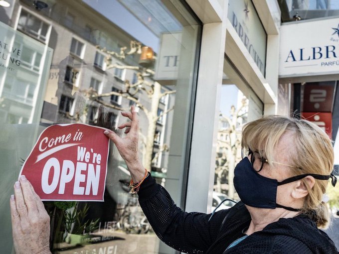 Small businesses in Germany begin to reopen as coronavirus restrictions ease.