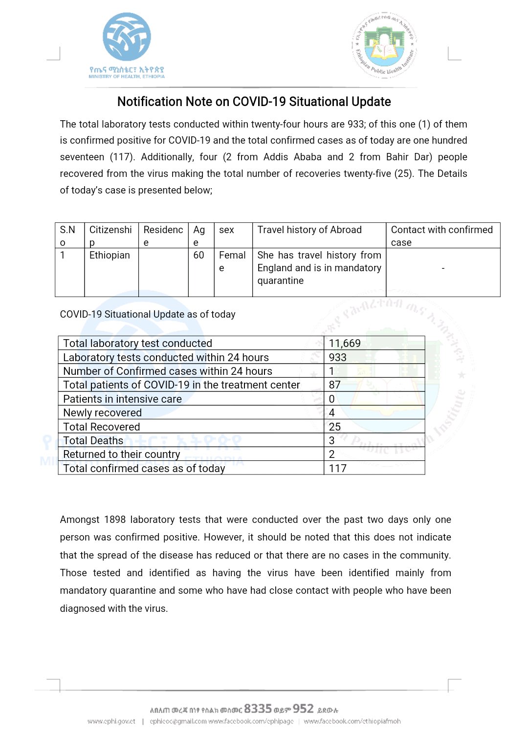 Nigeria reports 108 new cases of coronavirus and 3 new deaths.