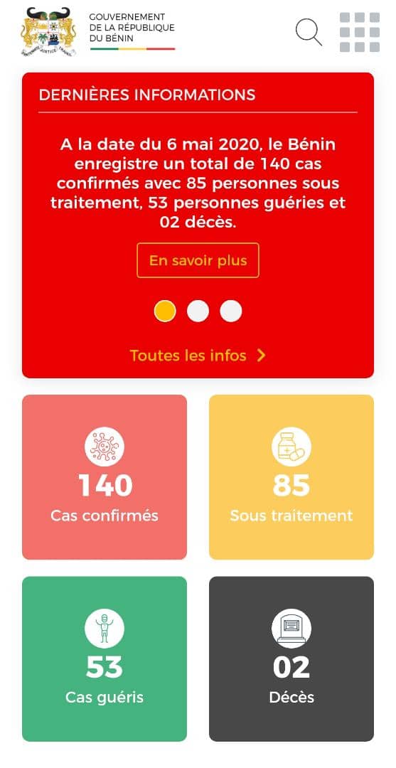 Benin has recorded a total of 140 confirmed cases with 85 people on treatment, 53 people cured and 02 deaths.