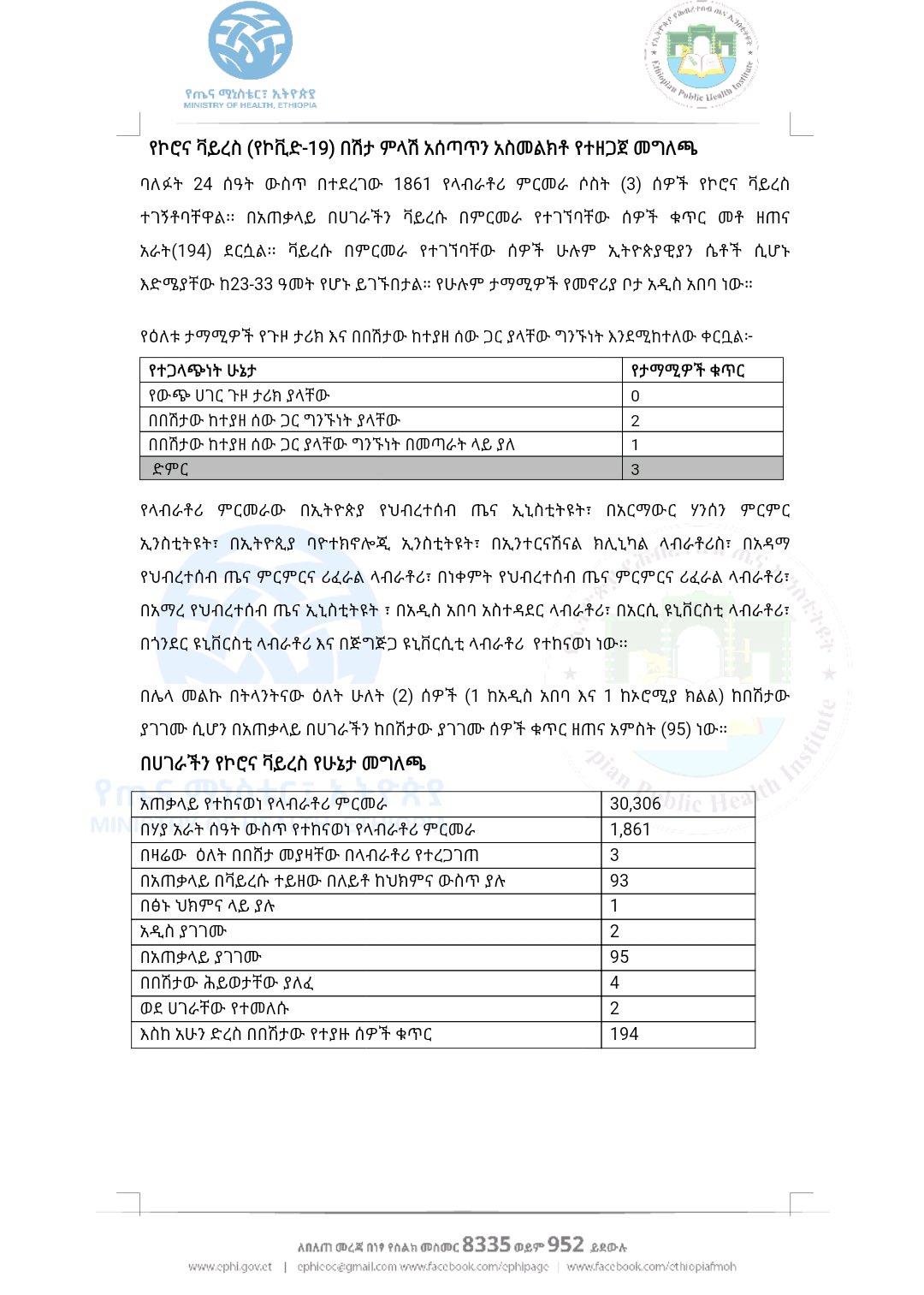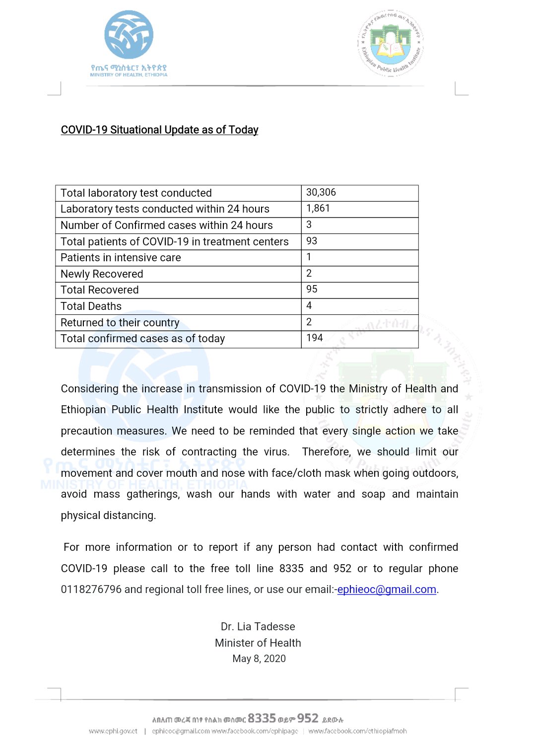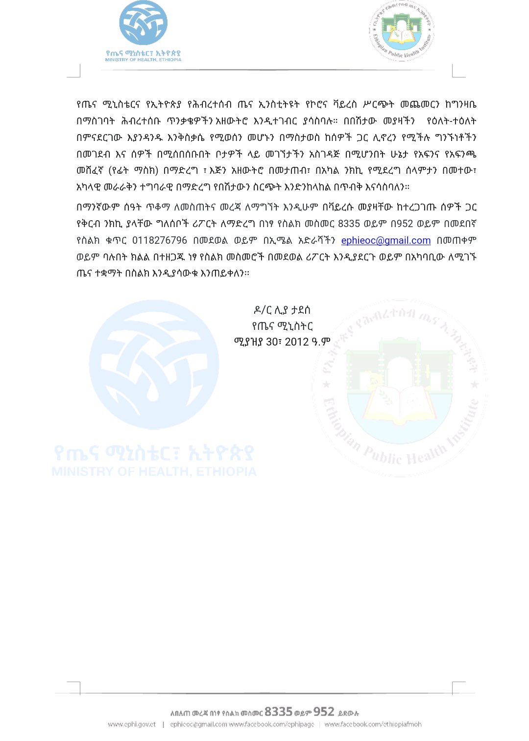 የመግባቢያ ሥምምነቱን ፈረሙት የጤና ሚኒስትሯ ዶክተር ሊያ ታደሰ እና የኢትዮጵያ መድን ድርጅት ዋና ሥራ አስፈጻሚ አቶ ነጻነት ሲሆኑ በሥምምነቱ መሰረት የኮሮና ቫይረስ ለመከላከል በተለያዩ የጤና ተቋማት ለሚሰሩ የጤና እና ለሌሎች ባለሙያዎች የህይወትና የአደጋ መድን ሽፋን ይደረግላቸዋል።