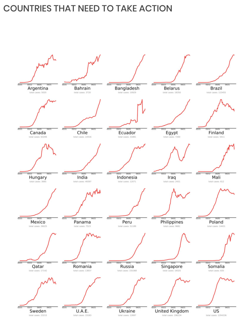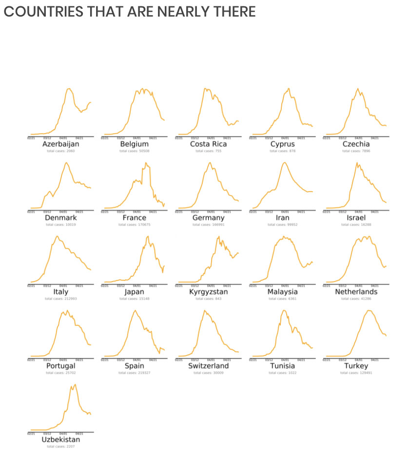A round-the-globe graphical look at how different countries are doing with coronavirus.