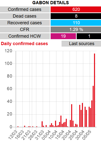 116 new confirmed cases covid19 including 93 in Libreville, 10 in Franceville, 8 in Bifoun, 3 in Lambaréné and 2 in Bitam.