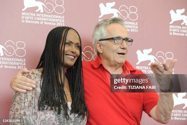 Italian director Marco Bellocchio poses with Zeudi Araya during a photocall at the 68th Venice Film Festival on September 9, 2011 at Venice Lido. Marco Bellocchio will be awarded the Golden Lion for Lifetime Achievement later in the day . AFP PHOTO / TIZIANA FABI (Photo credit should read TIZIANA FABI/AFP via Getty Images)