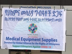 በታማኝ በየነ የሚመራው ዓለም አቀፍ ትብብር ለኢትዮጵያውያን መብት (ግሎባል አሊያንስ) የኮሮና ቫይረስን ለመከላከል የሚያግዝ የ11.5 ሚሊዮን ብር የመጀመሪያ ዙር አስቸኳይ የህክምና መሳሪያ ግብአቶችን ለኢትዮጵያ ጤና ሚኒስቴር ሚንስትር ሊያ ታደሰ በዛሬው ዕለት አስረክቧል።