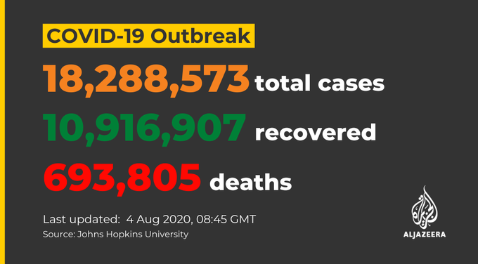 ባጠቃላይ በአለም አቀፍ ደረጃ እስካሁን ድረስ 18 ሚሊየን የሚጠጋ ህዝብ በቫይረሱ ሲያዝ ወደ 698 ሺህ ያህል ዜጎች ህይወታቸው አልፏል፡፡