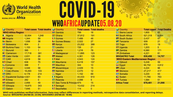 Over 978,000 confirmed COVID19 cases on the African continent - with more than 652,000 recoveries & more than 21,000 deaths cumulatively.