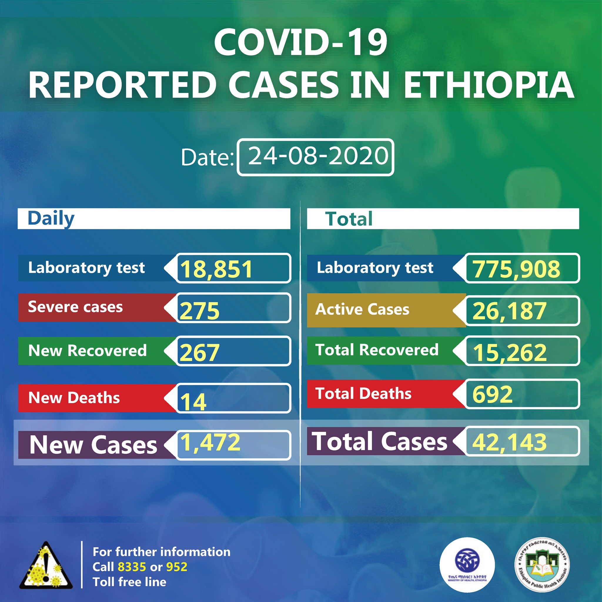 በሱማሌ ክልል ባለፉት 24 ሰዓት 401 የላብራቶሪ ምርመራ ተደርጎ 1 ሰው በኮቪድ-19 መያዙ ተረጋግጧል።
