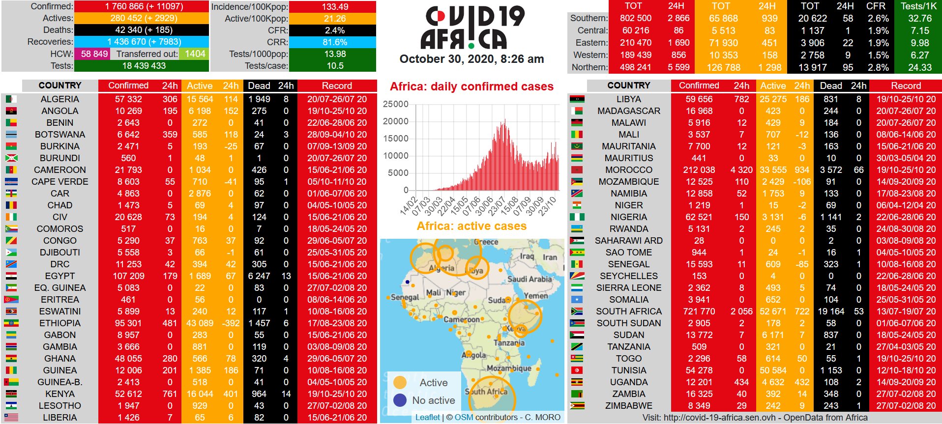 Over 1.7 million confirmed COVID19 cases on the African continent - with more than 1.4 million recoveries & 42,000 deaths cumulatively.