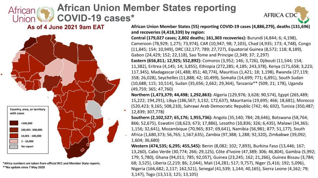 Over 4.7 million confirmed COVID19 cases on the African continent - with more than 4.3 million recoveries & 129,000 deaths cumulatively.