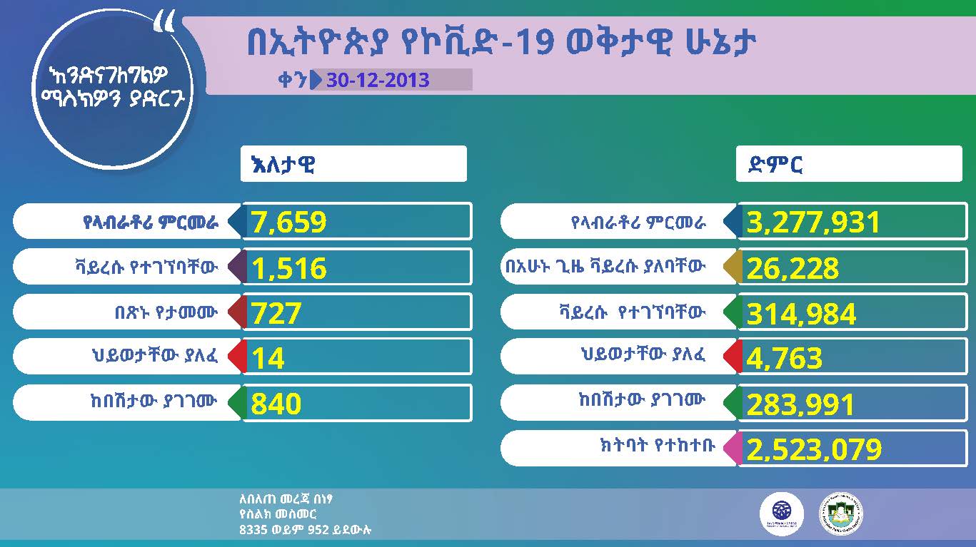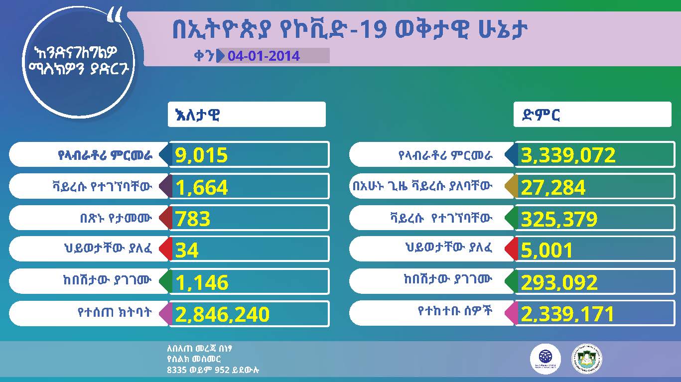 የጤና ሚኒስትር ዶክተር ሊያ ታደሰ በሰጡት መግለጫ “በኢትዮጵያ ባለፉት ሳምንታት በወረርሽኙ የሚያዙ ሰዎች፣ የሚሞቱና ፅኑ ህሙማን ቁጥር በጣም አሻቅቧል” ብለዋል።
