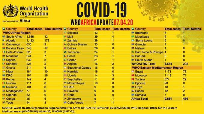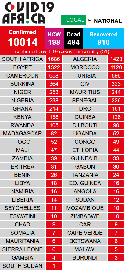 Over 9,600 cumulative cases reported in 52 countries on the African continent. Sao Tome and Principe confirmed its first 4 positive cases over the past 24 hours.