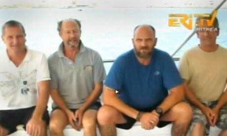 Footage of the four men held captive in Eritrea. Photograph: Eastafro.com/Screengrab