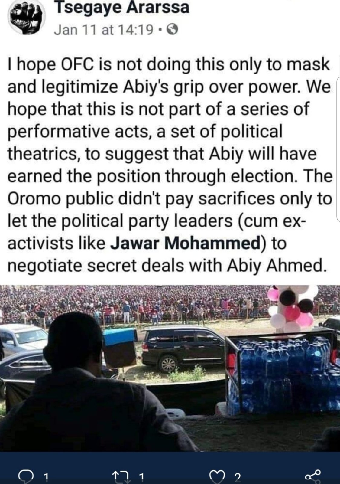 Re: Tsegaye Ararsa accuses Jawar Mohammed trying to make secret deal with Abiy Ahimed [NEW]