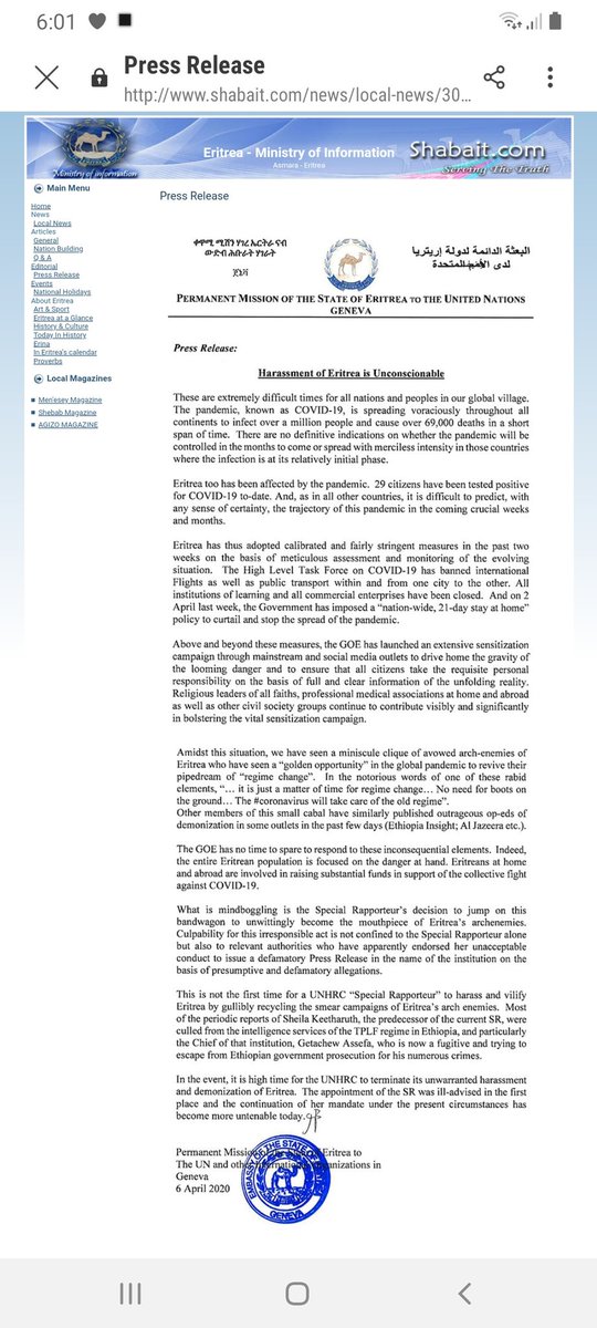 The one thing that is most telling about the real motive of the article, is the writers unwillingness to seek clarification from the Eritrean government on this matter. On 3rd April 2020, on the very day that article appeared on the VOA news website, Simon Marks wrote a series of tweets in which he seemed to be asking Eritrea’s Information Minster for clarification. But being the amateur that he is, he did not even wait for a response before he posted his article.
