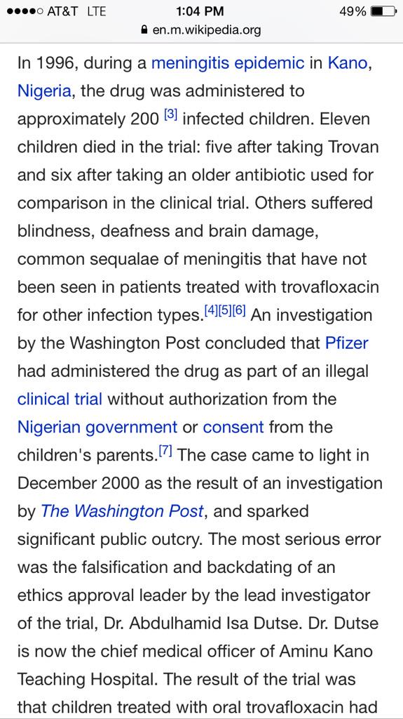 Deadly medical experimentation on Nigerian children, by Pfizer.