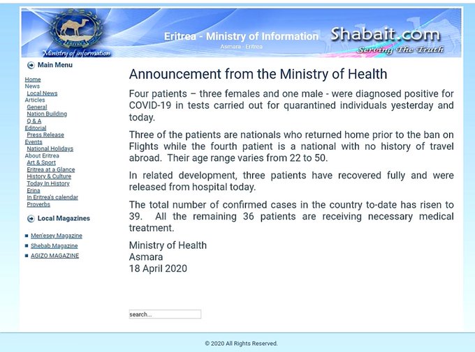 ሰለስተ ካብቶም ብኮሮና ተታሒዞም ዝነበሩ ዜጋታትና ምሉእ ብሙሉእ ሓውዮም ነናብ ገዝኦም ተፋንዮም።