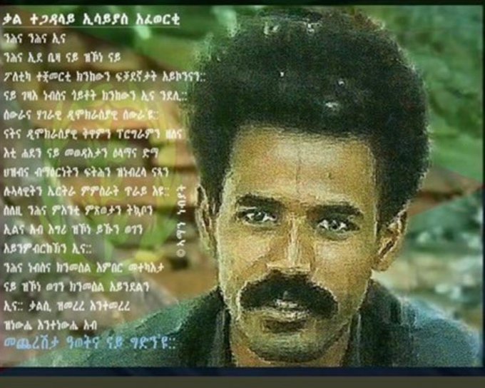 ንሱ ደኣ፡ እቲ ከማን ምስ ብጾቱ ኣብ 20 ዓመቱ፡ ኣብ በረኻታት ሰፊሩ፡ ኣብ ብልሒ ክልተ መልጸ ረጊጹ፡ ከም ንስሪ ልዕሊ 25 ዓመታት ንቕድሚት ጠሚቱ፡ ራእዩ ዝጸሓፈ። ከም ረባዕ ገመል፡ ኣፍልቡ ነፊሑ፡ ብርእሰ ተኣማንነት እናሰጎመ፡ ነቲ ተመንጢሉ ዝነበረ ናጽነትና ፡ ካብ ኣፍ ሓራግጽ መንዚዑ ንህዝቡ እፎይታ ዝፈጠረ። ደጊሙ ናጽነት ብሓይልኻ ምርግጋጽ ኣካሊ ኣይኮነን ብምባል፡ ንፍሕሶን ውዲትን ዓለም ሓሊፉ ብምጽናሕ፡ ነቲ ኣብ ሰማንያታት ኮይኑ ዝሓንጸጾ ሪፈረንደም፡ ንዓለም ብዘስደመመ፡ ብዘይወልሓንቲ ጸቕጢ፡ ህዝቢ ኣድሚጹ እወ ንናጽነት ምስ በለ። ኣብቲ ማእከል ኮምብሽታቶ፡ ኣብ ማእከል ህዝቡ፡ ንመላእ ህዝቢ ዓለምን ሓያላን ሃገራትን ብቀጥታ ፈነወ ናይ ማዕከናት ዜና፡ ናጽነትና ብደምናን ብድምጽናን እምበር ኣብ ብያቲ ወርቂ ጌሩ ዘቐበለና የለን፡ ኢሉ ድምጹ ዘንጎድጎደ ፋረ ኣምበሳ፡ ራኢኡ ብግብሪ ዘተግበረ፡ ድሕሪ ናጽነት ውን፡ ነቲ ብሓያላን ሃገራት ተሓንጊሩ፡ ንወራር ዝመጸ ወያነ፡ ብመሪሕነቱ ዋርሳይን ይከኣሎን ኣኽቲቱ ኣብ ሰለስተ ወራራት ዝሓምሸሸን፡ ኣብ ፍርዲ ከምዝቐርብ ዝገበረን፡ ስዒቡ ዝመጸ እገዳ ውን ህዝቡ ሒዙ ብምጽማም፡ ኣብ ዕድመ ናይ ጸላእቲ ከይኣተወ ሃገሩ እንዳሃነጸ፡ ካብ መጻወድያ ኣውጺኡ፡ ንጸላእቱ ኣብ ሆቴላት መቐለ ዓሺጉ፡ ኣብ ኣራት ኪሎ ዝጓዘመ፡ፋረ ኣምበሳ ወዲ ኣፎም፡ ኣብ ማእከል ኣዲስኣበባ ባንዴርኡ ባዕሉ ዝሰቐለ፡ታሪኽ ኣብ ልዕሊ ታሪኽ ዝደራረበ፡ ገንጺልካን ኣምቢብካን ዘይውዳእ ማህደር እዩ። ኤርትራና ካብ ትሕበነሎም ኣእላፋት ጀጋኑ ኣብቲ ጥርዚ ናይቲ ኩናት ዝቕመጥ መሪሕ እዩ። ፕረሲደንት ግን ድማ ተጋዳላይ፡ ተጋዳላይ ግን ድማ ዋርሳይ፡ ዋርሳይ ግን ድማ ሓፋሽ። ተዋግኣይ፡ሓረስታይ፡ ነዳቓይ፡ ሓንጻጻይ፡ ገያሻይ፡ ዘዋራይ፡ ኩሉ ዝኽእል፡ ተውለ እዩ። እቲ መን እዩ ንሱ ዝበልካዮ።