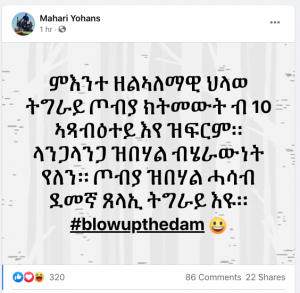 The incendiary speech by Trump has made some TPLF cadres in the isolated ክልል Tigray, very happy. They can't hide their joy, and took to social media to post this! Look at "Nuclear Boy" Mahari Yohans from "Independent Tigray"!