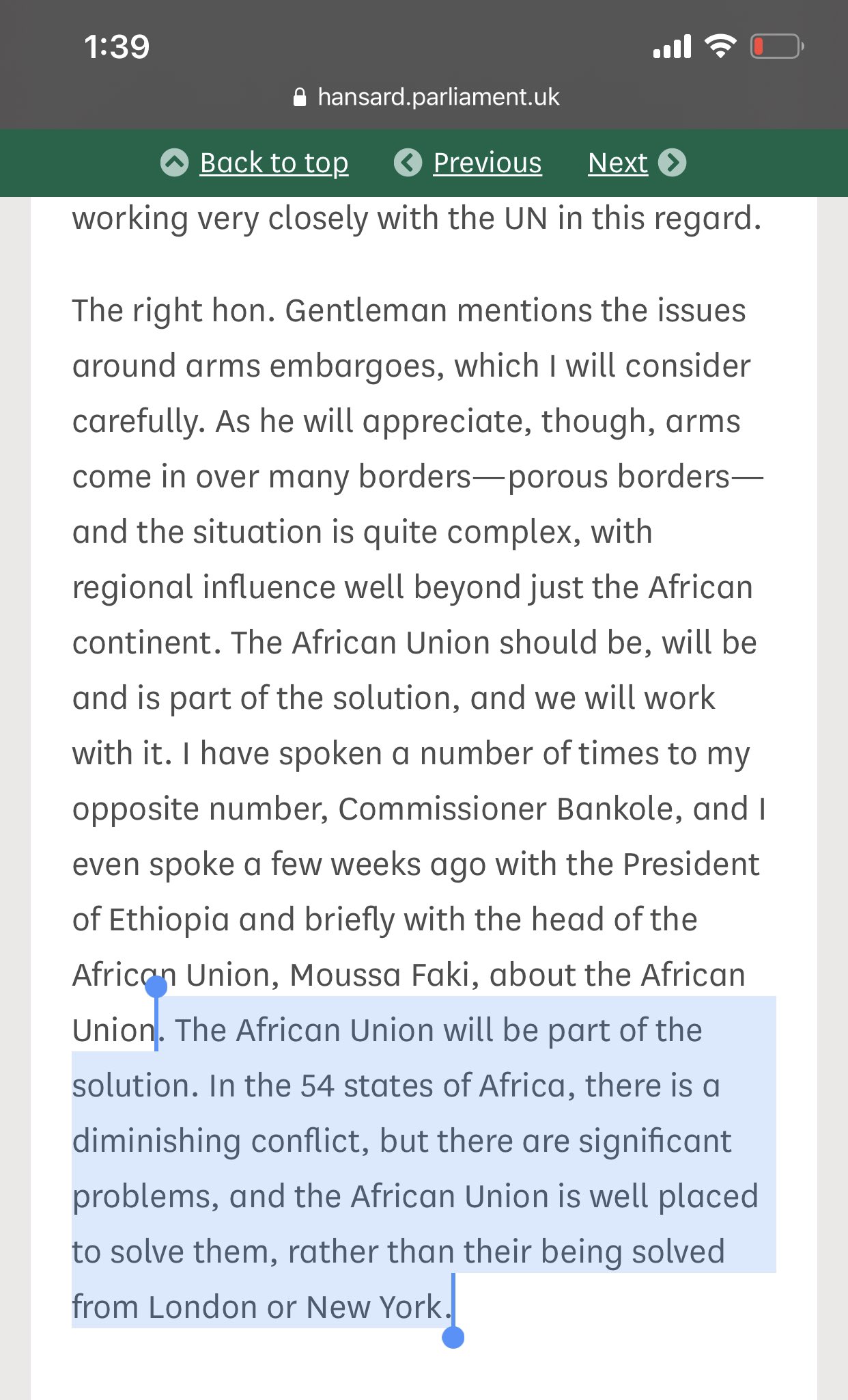 In the 54 states of Africa there’s a diminishing conflict, but there’re significant problems & the @_AfricanUnion is well placed to solve them; rather than their being solved from London or New York.