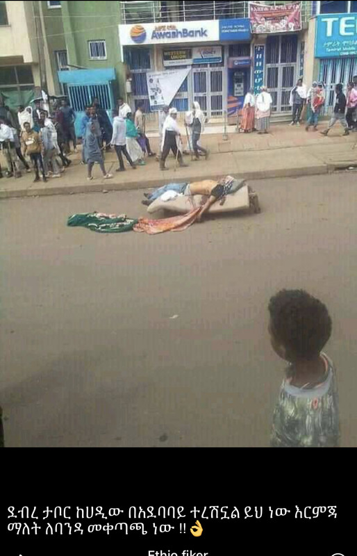 They laid the bullet-riddled body of the terrorist agame right in front of Awash Bank to send a clear message to the evil agame terrorist who calls himself Aba Awash. :lol: :lol: :lol: