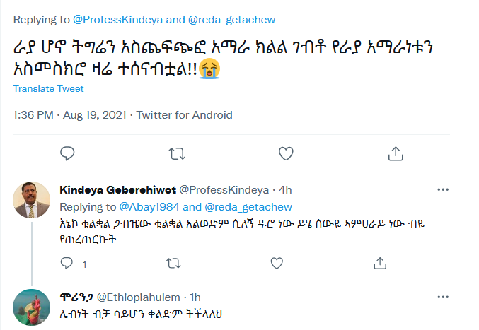 look his profile picture below condemning the TPLF ..There's something fishy here, he chnged it now https://twitter.com/ProfKindeya
