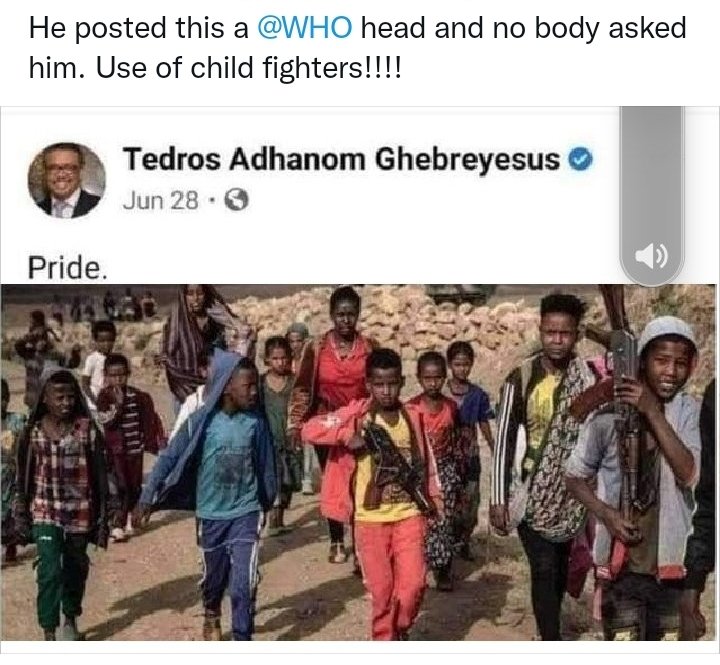 This is how Tedros Adhanom expressed his pride in the children who were going to be butchered. A vulgar person who did have the sense to recognize the idiocy of is tweet.