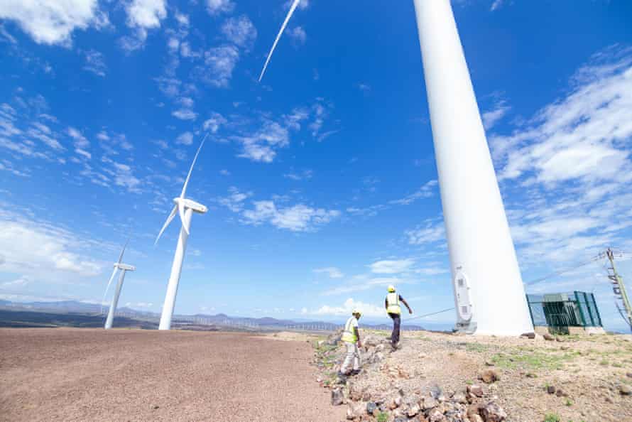 Wind turbines in Kenya’s Lake Turkana region. Renewable energy is a huge growth opportunity for Africa, Adesina says. Photograph: Muchura