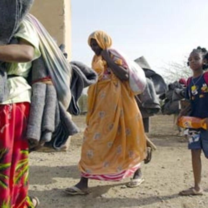 Eritrean refugees arriving at Kilo 26 refugee camp in eastern Sudan.