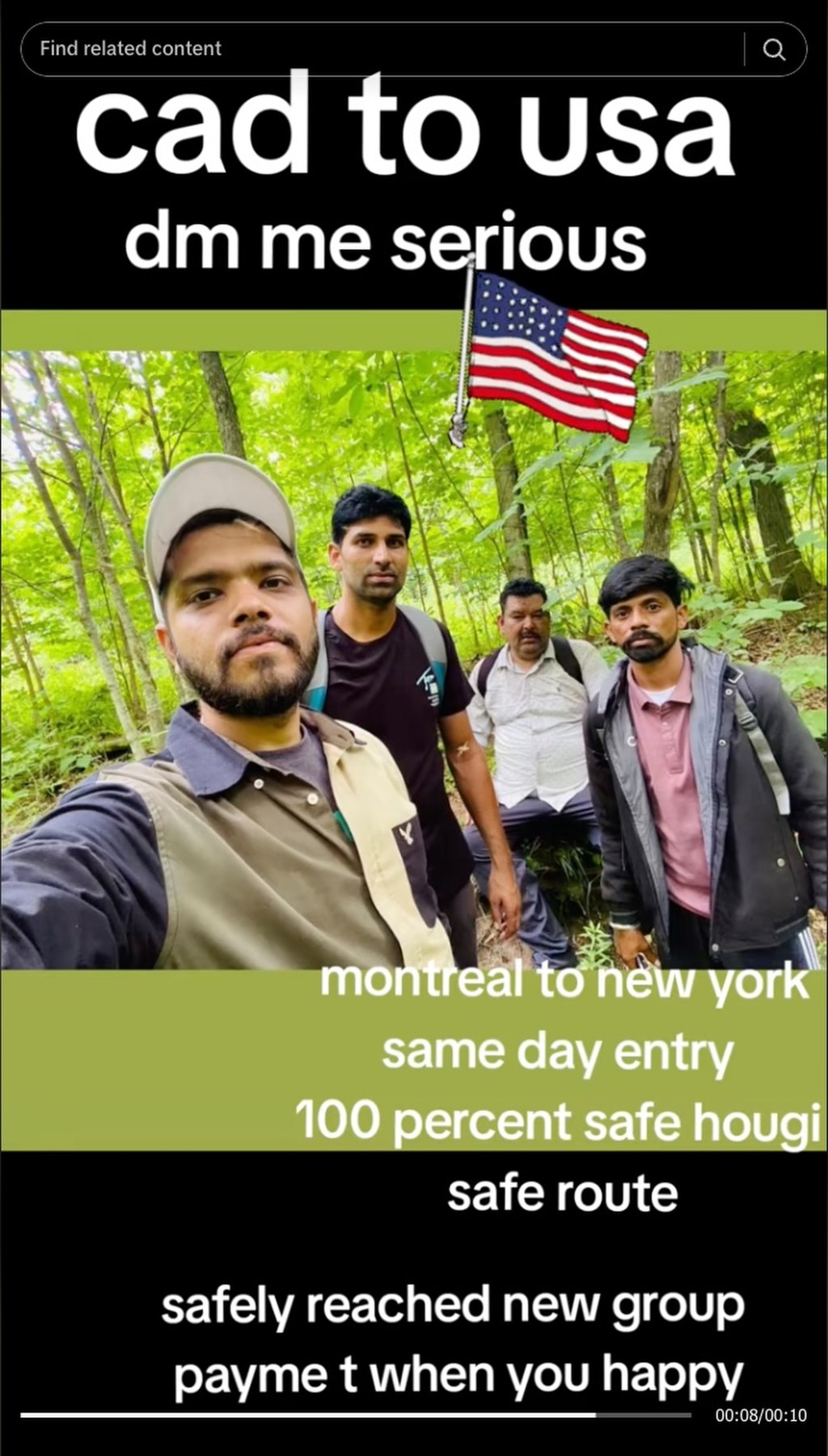 The posts often feature a US flag waving over a wooded northern border, set to Indian music, urging wannabe border crossers to DM them for more details.