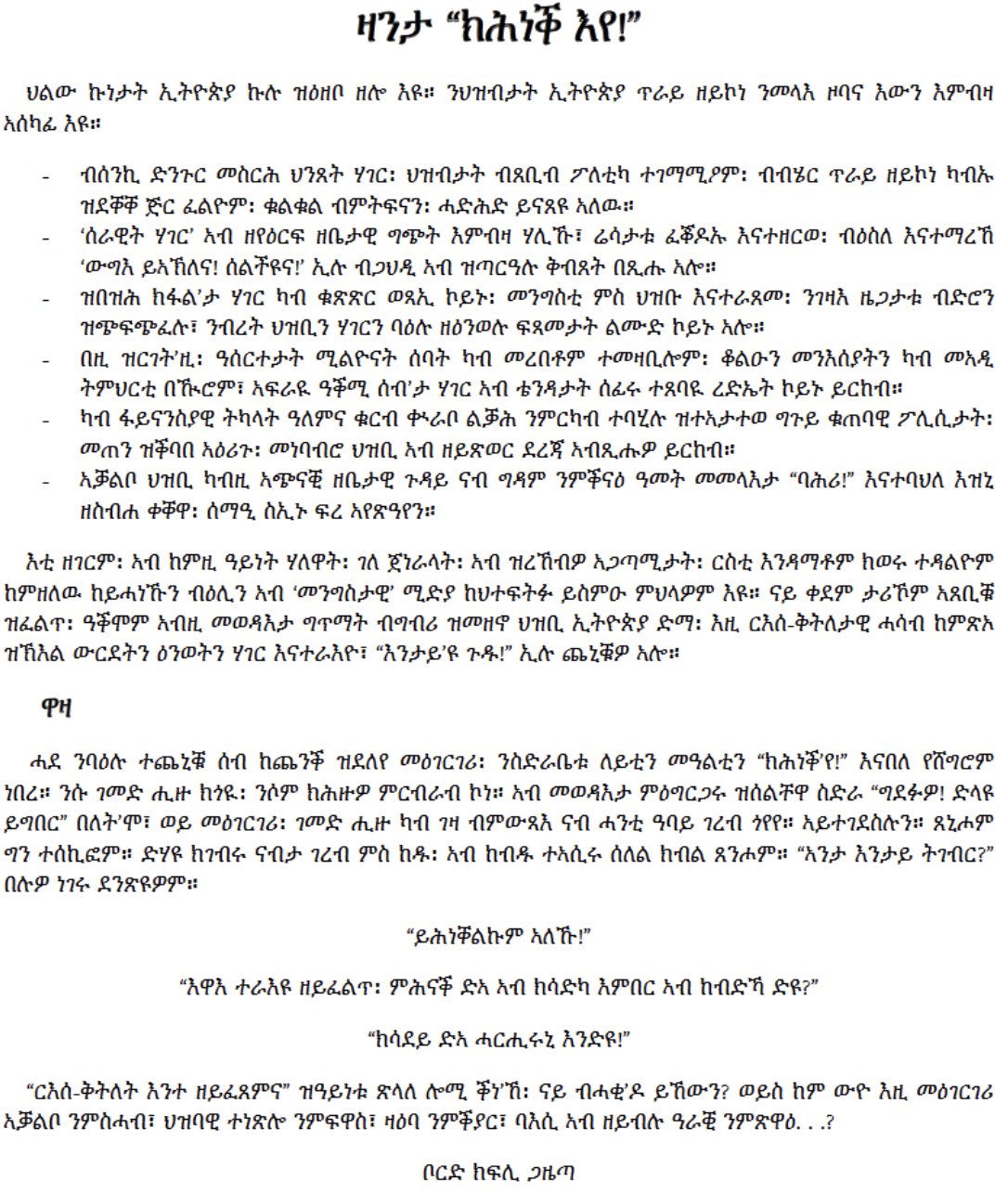 - ካብ ዛንታ "ክሕነቕ'የ" ብቦርድ ጋዜጣ ሓዳስ ኤርትራ