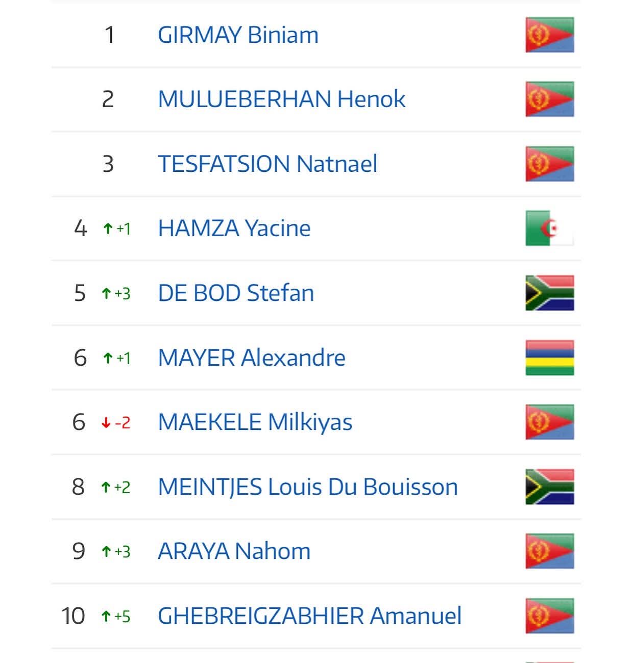 UCI Africa’s top cyclists, 2025. 6 Eritrean riders in top 10 including all top three spots. Incredible!